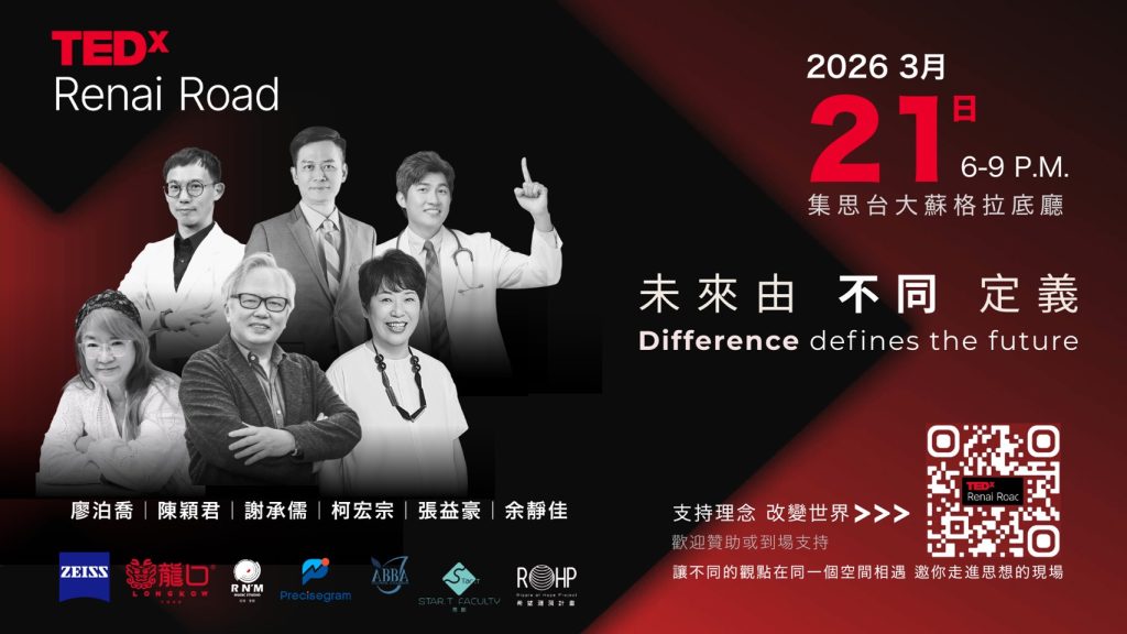 Future Events TEDxRenai Road 2026 第一次大會 未來由不同定義|Difference defines the future 在這個瞬息萬變的時代,是什麼定義了我們的明天?不是隨波逐流,而是那些微小卻獨特的差異。TEDxRenai Road 邀請您一同探索多元觀點,見證不同領域的思想碰撞。這一晚,讓我們重新定義未來。 立即報名 / Register Now